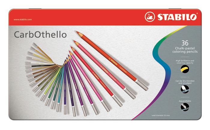 Pasztell ceruza készlet, kerek, fém doboz, STABILO "CarbOthello", 36 különböző szín