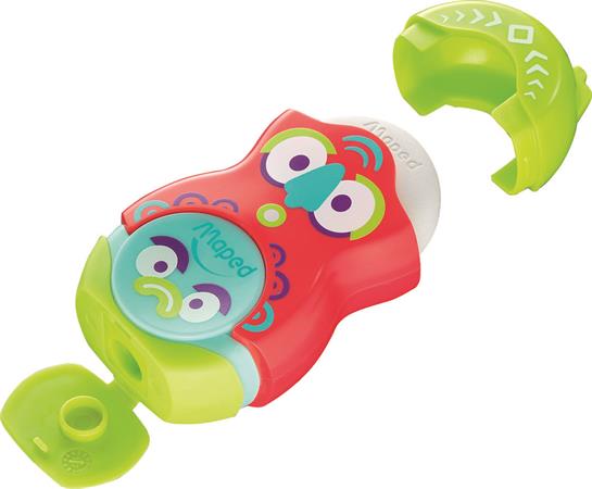 Hegyező és radír, egylyukú, tartályos, MAPED "Fancy", vegyes színek